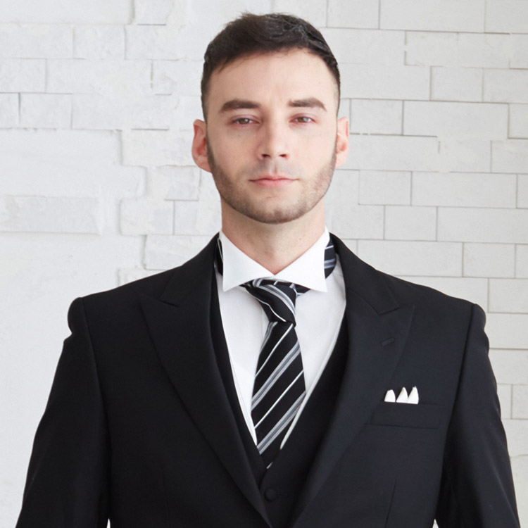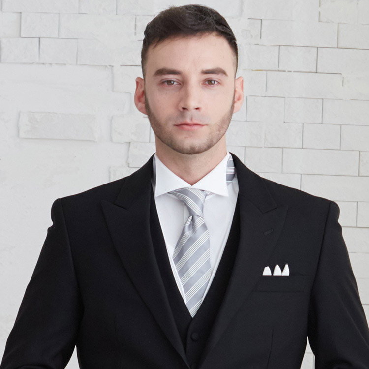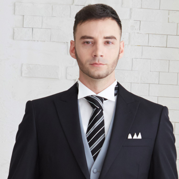 カッコいいですね!シルバーネクタイなどを取り入れるとすっきりした爽やかな印象です。
