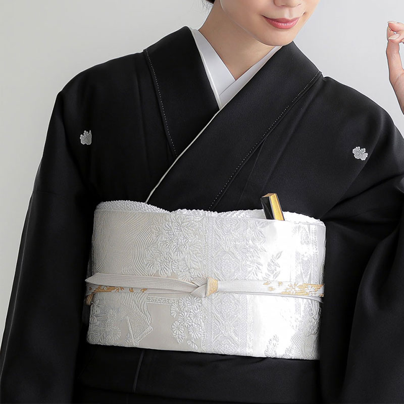 - 黒留袖では、帯揚げ・帯締めは白が基本。華やかさを出したい場合は、白地に金糸・銀糸が織り込まれたものを選びます。