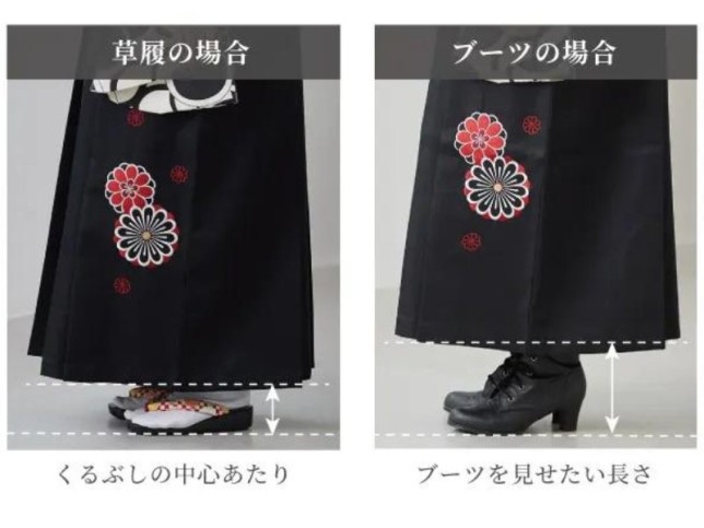 ・ブーツ→袴の裾がくるぶしの2~3cm上にくるのがお勧め