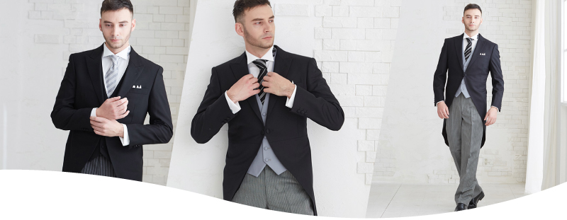 当店では、モーニングセットのレンタルもしています。神社やお寺で結婚式をする場合でも、ほとんどの方がモーニングを着用しますが、たまに黒紋付羽織袴をレンタルする方もいます。