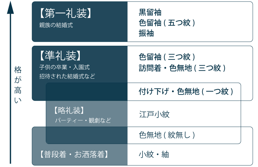 着物の種類によって【格】が変わってきます。